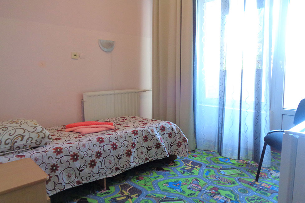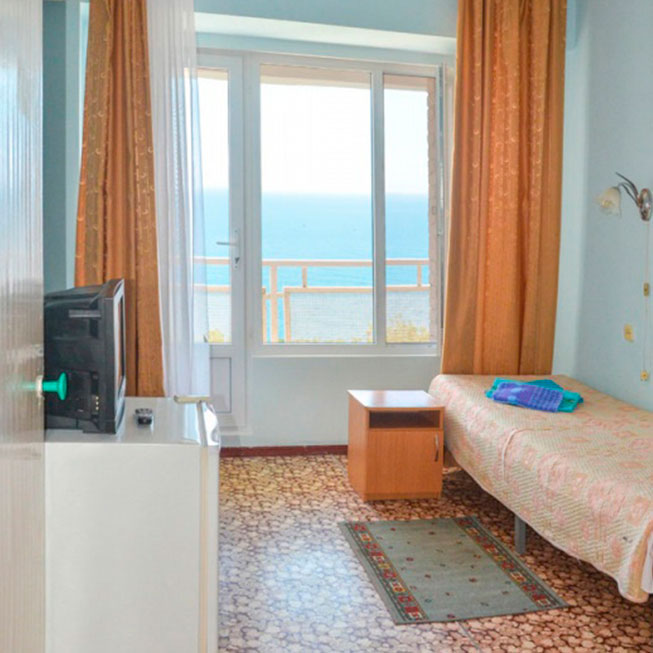 Площадь номера - 12 кв.м. 1 осн. место. Балкон. Мебель: вешалка, зеркало, кровать односпальная, прикроватная тумбочка, стул, тумба, шкаф. Оборудование: телевизор, холодильник. Санузел: с душем, туалетные принадлежности. Сервис: Wi-Fi бесплатно, смена полотенец, смена постельного белья, уборка номера.